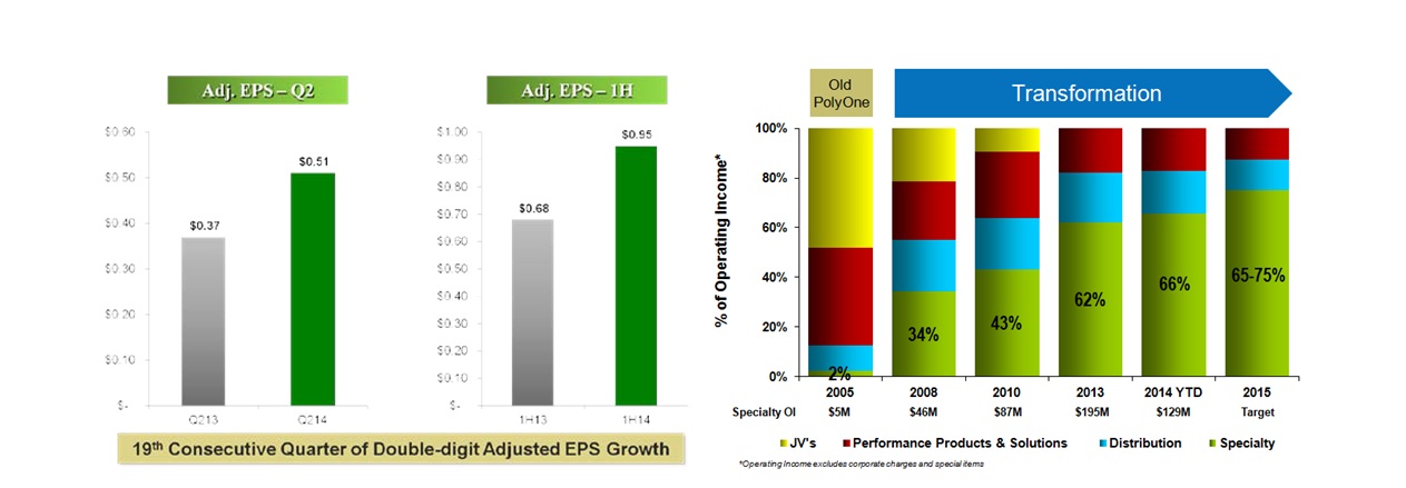 CLEVELAND - PolyOne Corporation (NYSE: POL) today reported its second quarter results. As expected and to drive earnings growth, the company continued to exit certain unprofitable products associated with the Spartech acquisition completed in March of last year. Accordingly, revenues were $1.01 billion for the second quarter of 2014, compared to $1.04 billion in the second quarter of 2013.